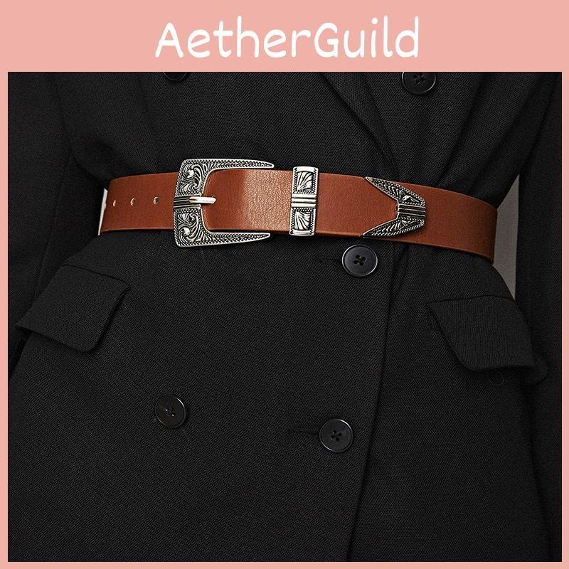 This bohemian-inspired women's belt features a wide, 2-4cm faux leather strap with a vintage aesthetic. The alloy buckle with a circular design provides secure fastening and a stylish accent. Measuring 45.3 inches in length, it supports casual or artistic outfits. Ideal for daily wear or artistic events, it can be cleaned with a damp cloth for maintenance.