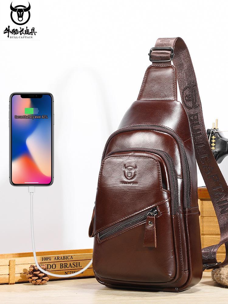 Men's Premium Leather Crossbody Chest Bag - Large Capacity for Tablet and Phone