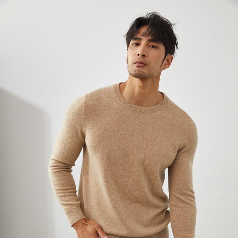 Men's 100% Cashmere Crew Neck Sweater - British Style Slim Fit for Autumn/Winter