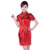 This elegant short summer dress combines the timeless style of a traditional Tang suit and the classic cheongsam silhouette. Crafted from luxurious satin, it offers a smooth and glossy touch. The dress features exquisite dragon and phoenix embroidery, symbolizing power and grace. Perfect for special occasions or a chic summer outing, this piece effortlessly blends cultural heritage with modern fashion.
