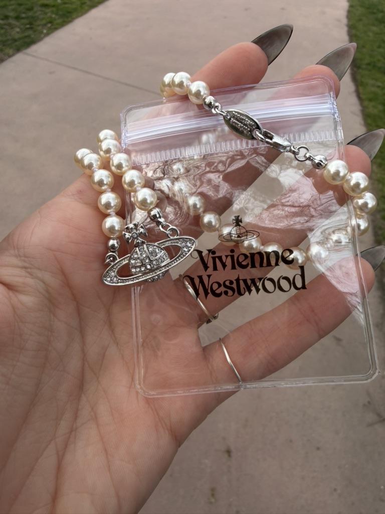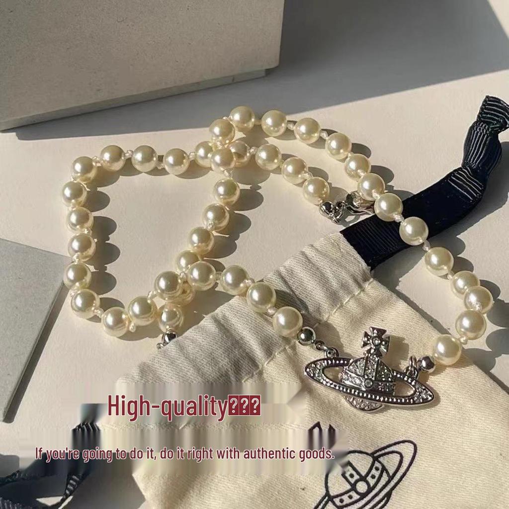 Vivienne Westwood Saturn Pearl Necklace: Women's Luxury Choker with Vivienne's Planet Clavicle Chain