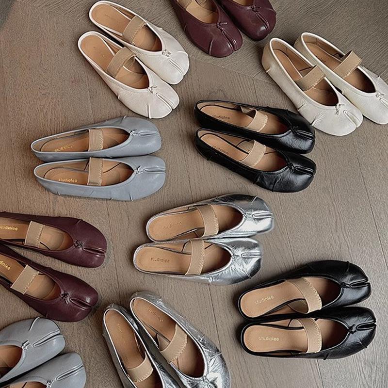 Experience elegance and comfort with these beautifully designed low-cut ballet shoes, perfect for adding a touch of sophistication to any outfit. Crafted specifically for women, these shoes feature a unique one-strap design and a split-toe style that enhances flexibility and movement. The rubber sole ensures durability and provides excellent grip, while the leather lining offers a soft, luxurious feel against the skin, making these ballet shoes a stylish and practical choice for the modern woman.