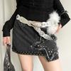 Y2K Plush Furry Splicing Belt Punk Star Rivet Belt Vintage Faux Fur Belts Women Fashion