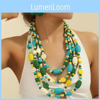 Ethnic Style Colorfull Long Necklace Beach Pastoral Style Wood Retro Multi-Layer Geometry