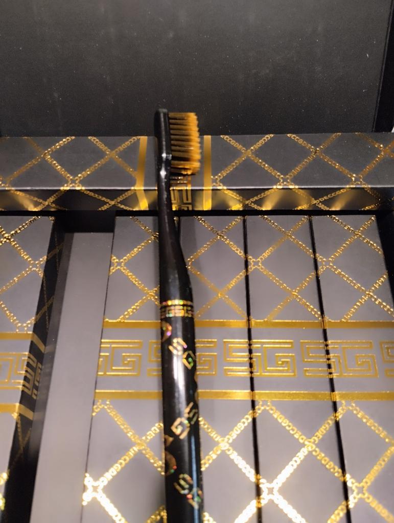 Hazy Beauty Luxury Soft Bristle Toothbrush Set: Black Gold Handle, Wide Head, 6-Piece Gift Box