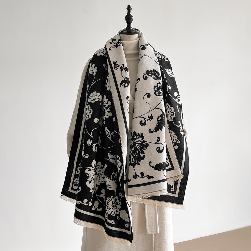 Women's Warm Faux Cashmere Scarf Winter Thick Patterned Cashew Flower Blanket Scarf Fashionable Luxurious