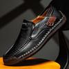 Experience the perfect blend of style and comfort with these hand-stitched leather slip-on loafers, designed specifically for men. Ideal for casual outdoor adventures, these low-top flats are part of the Spring Collection and are available in large sizes to ensure a comfortable fit. The footwear showcases a premium cow leather upper, complemented by a durable rubber sole for excellent traction and stability. The leather lining and a cushioned polyurethane insole provide added comfort and support, making these loafers a stylish and practical choice for everyday wear.