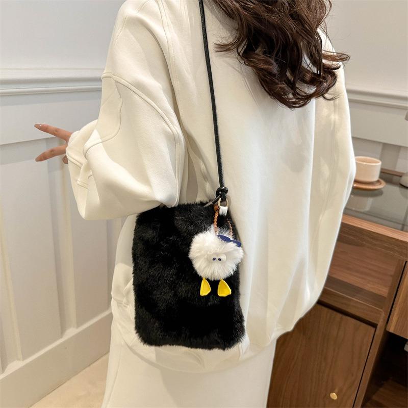 Autumn and Winter New Plush Change Messenger Bag Lipstick Mobile Phone Shoulder Card Bag Cute Fluff Bag