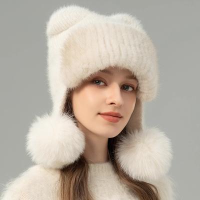 Winter New Korean Version Mink Ear Protection Hat Female Cute Small Ears Fox Hairball Fur Hat Warm Lei Feng Hat