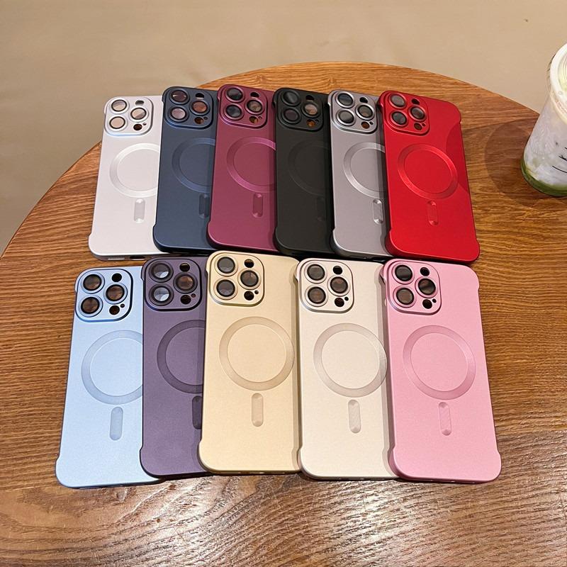 Applicable To IPhone 16 Frameless Magnetic Suction Phone Case Metal Paint Apple 15 Ultra Thin 14 with Lens Film Protective Cover