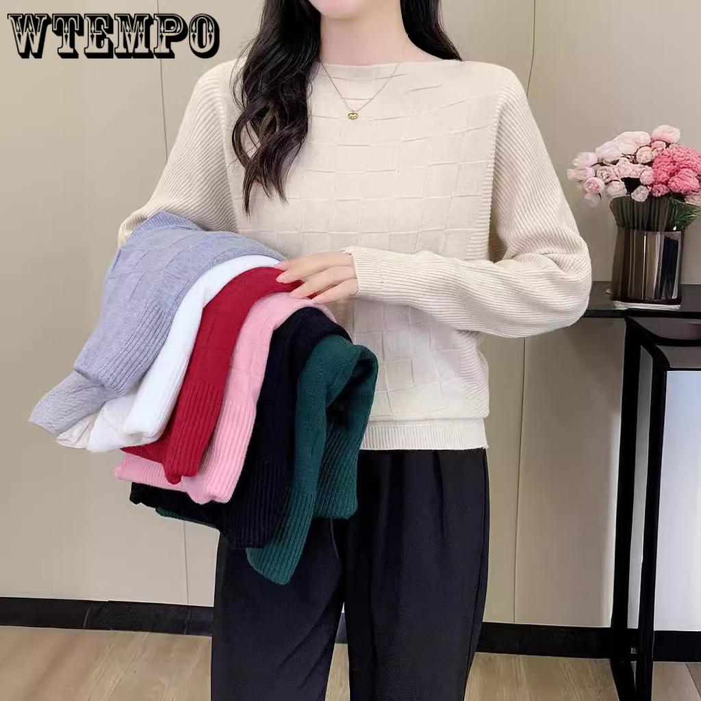 Bat-sleeve Knitted Sweater for Women Long-sleeved Loose Plus-sized Sweater Casual Solid-color Pullover for Autumn and Winter