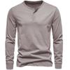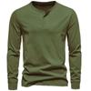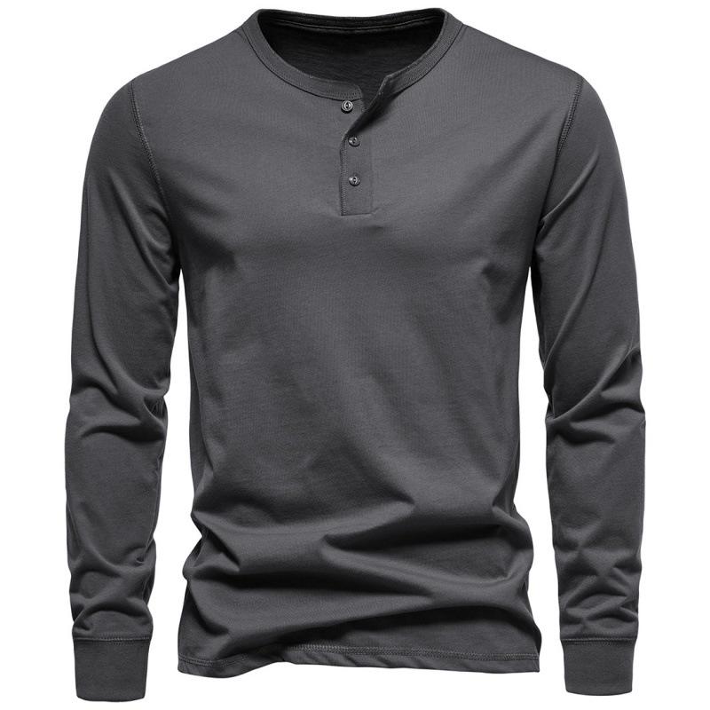 Discover the perfect blend of comfort and style with this men's Henley collar long sleeve casual T-shirt. Crafted from high-quality cotton, this shirt offers a soft touch and breathable feel, ensuring all-day comfort. Its solid pattern and stand neckline add a touch of sophistication, making it versatile for various occasions. Whether you're dressing up for a night out or keeping it casual during the day, this T-shirt is a must-have staple in your wardrobe.
