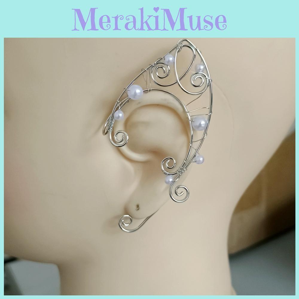 This fashion-forward ear cuff features intricately handwoven designs crafted from imitation pearl material, measuring approximately 1 inch in diameter. The flower-shaped style is enhanced with electroplating for a sleek, durable finish, offering a unique accessory for women. Ideal for trendy, vintage-inspired looks, it complements casual or dressy outfits. Clean with a soft cloth to maintain shine.