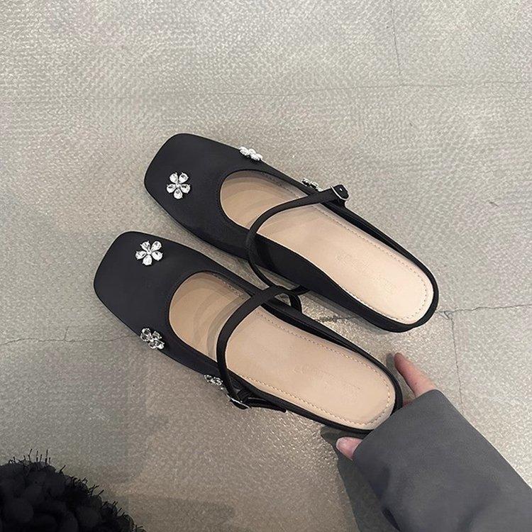Rhinestone Flower Bag Head Half Slippers Women's Summer Wear 2025 New French Beautiful Half Drag Mary Jane Flat Shoes