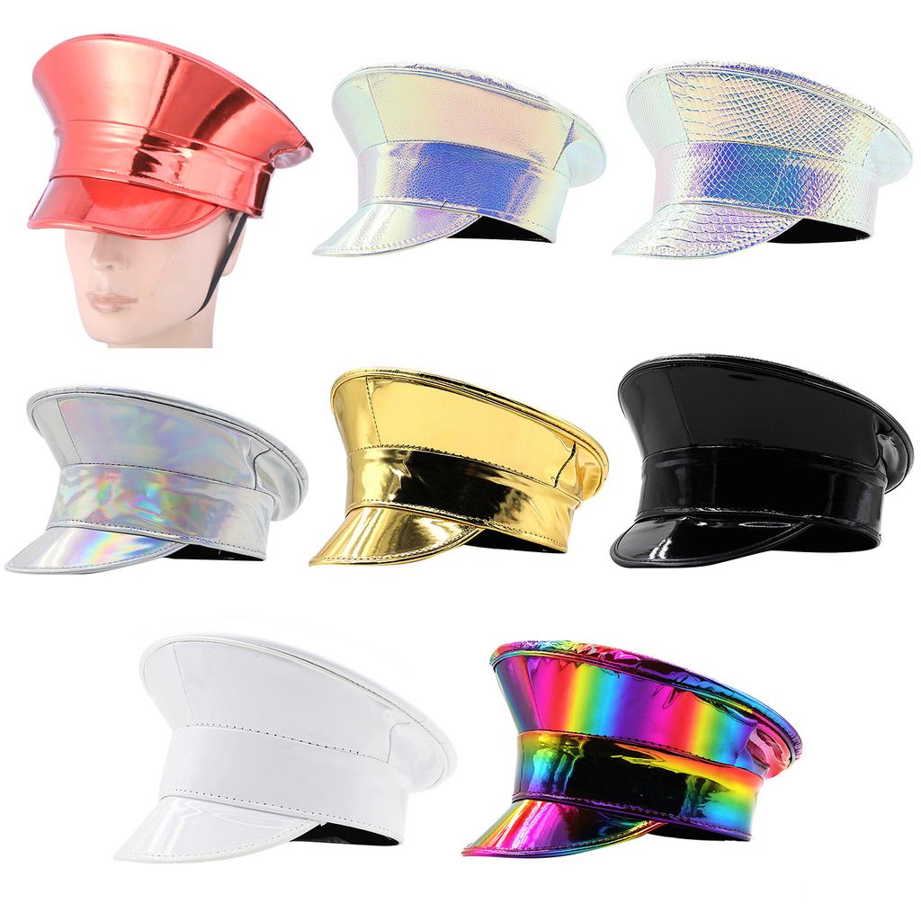 PatentLeather Military Hat for Women Novelty Glitter Party Hat Sergeant Captain Cap for Stage Club Bachelorette Party