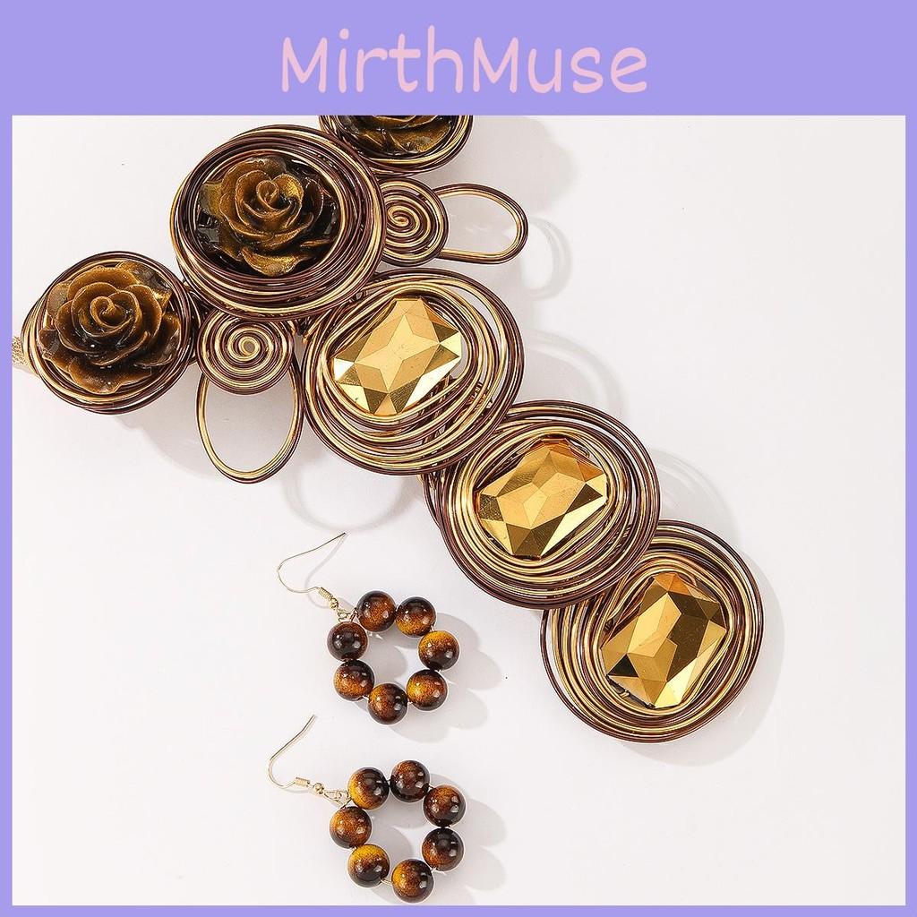 This jewelry set features a large, mixed-material design with electroplated finishing, combining crystal-like gemstones and resin flower accents. The necklace measures approximately 24 inches long with a standard chain style, while the earrings include matching motifs. Crafted for versatile wear, it suits both casual and formal occasions. Ideal for spring 2025 fashion trends, it adds a bold, artistic touch to any ensemble. To maintain its shine, wipe with a soft, damp cloth.