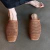 Hand-woven Mesh Yarn Bag Head Sandals Women's French Versatile Hollowed-out Outer Wear Square Head Flat Bottom Half Slippers