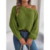 Autumn and Winter Casual Hollow One-word Neck Off-the-shoulder Lantern Sleeve Sweater