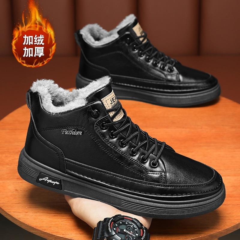Men's Shoes Winter Velvet High-top Martin Boots Men's Trend Versatile Chef Shoes Men's Thickened Warm Cotton Shoes Work Shoes