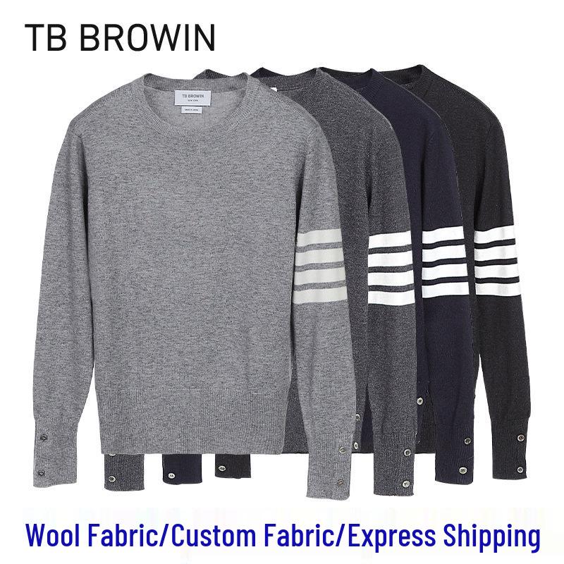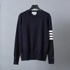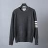 This stylish wool sweater features a classic round neckline and long sleeves, making it a versatile addition to any wardrobe. With its standard thickness, it offers just the right amount of warmth and comfort for cool weather, while the elegant four-bar design adds a touch of sophistication. Perfect for both casual and semi-formal settings, this sweater combines timeless design with modern flair.