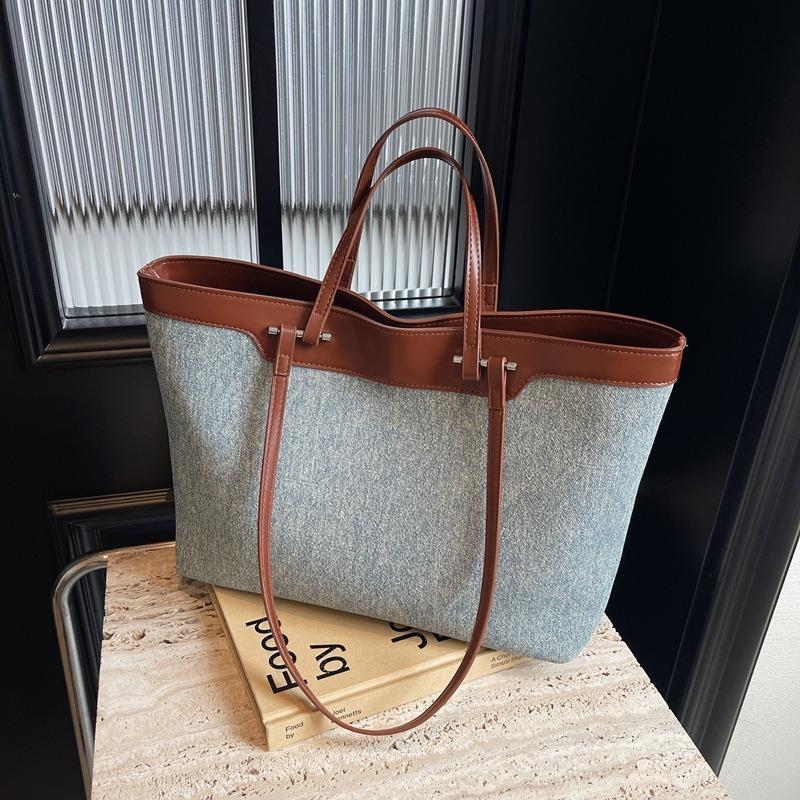 Autumn and Winter Tide Versatile Handbag Large-capacity Tote Bag Contrasting Color Shoulder Large Bag Women's Bag