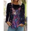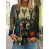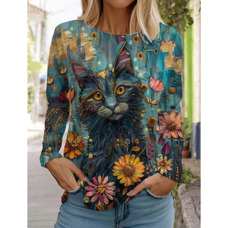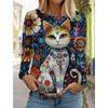 Spring and Autumn Round Neck Art Cute Cat Pattern 3D Printed Top Fashionable Casual Long Sleeved Women's T-shirts
