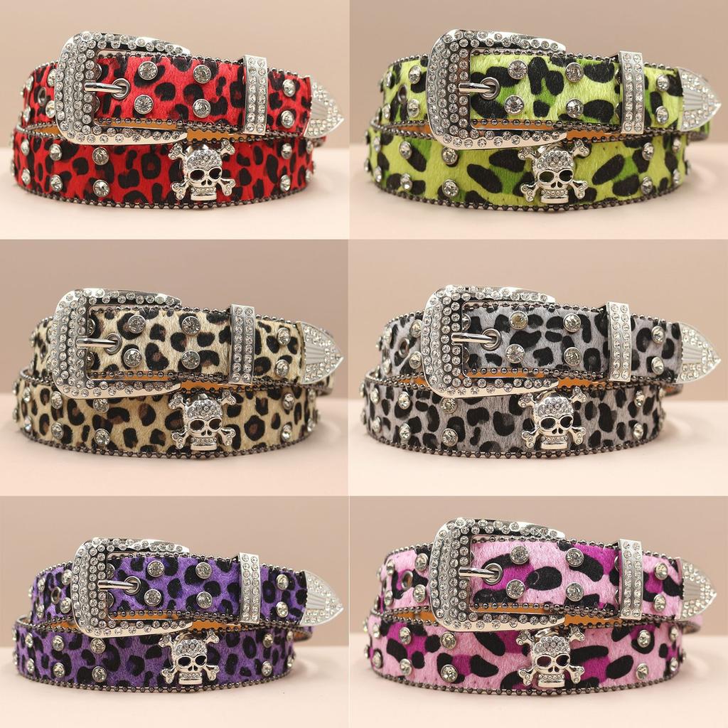 Punk Belt European and American Style Skeleton Pile Rhinestone Punk Hot Girl Style Fashion Belt Men's Women's Belt