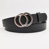 PU Silver Double Round Silver Buckle Belt Girls Jeans Decorative Belt