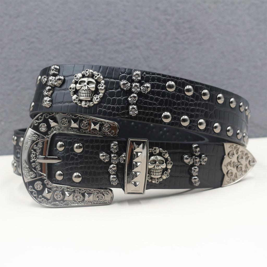 Crocodile Pattern American Western Rivets Skeleton Street Rivets Punk Men's Belt Women