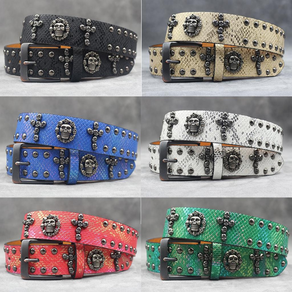 7-color 3D Skull Rivet Belt Punk Men's Belt Women's Snake Pattern Versatile Decorative Belt