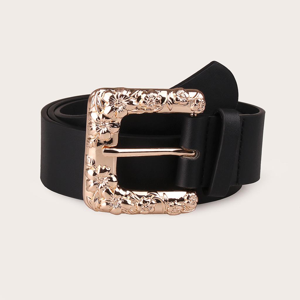 New Carved Super Large Buckle Pin Buckle Retro Versatile Elegant Belt Black Single Accessories Santa Claus Belt