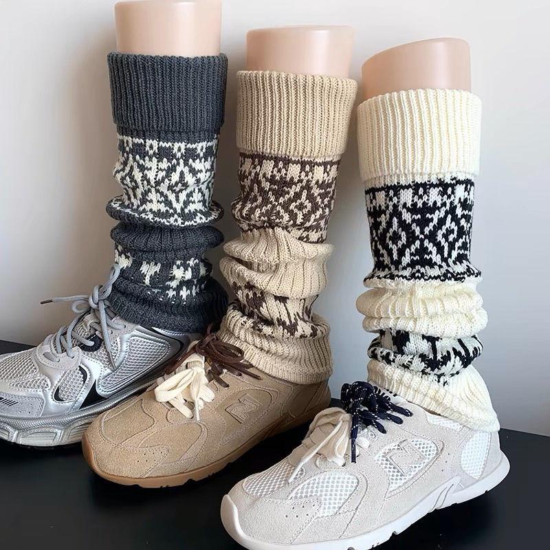Mallard Color Thick Thermal Knit Sock Leg Warmers Autumn Winter Fair Isle Chunky Yarn Mid Calf Stacked Socks White Leggings