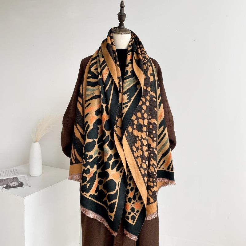 Autumn and Winter Leopard Print Wild Fashion Warm Scarf Unique Personality Sweet Cool Wind Women Imitation Cashmere Air Conditioner Shawl Scarf