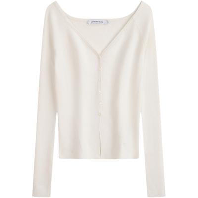 Casual Simple Embroidered Ribbed V-Neck Button Cardigan Sweater Women Sweater Milk-White J223610