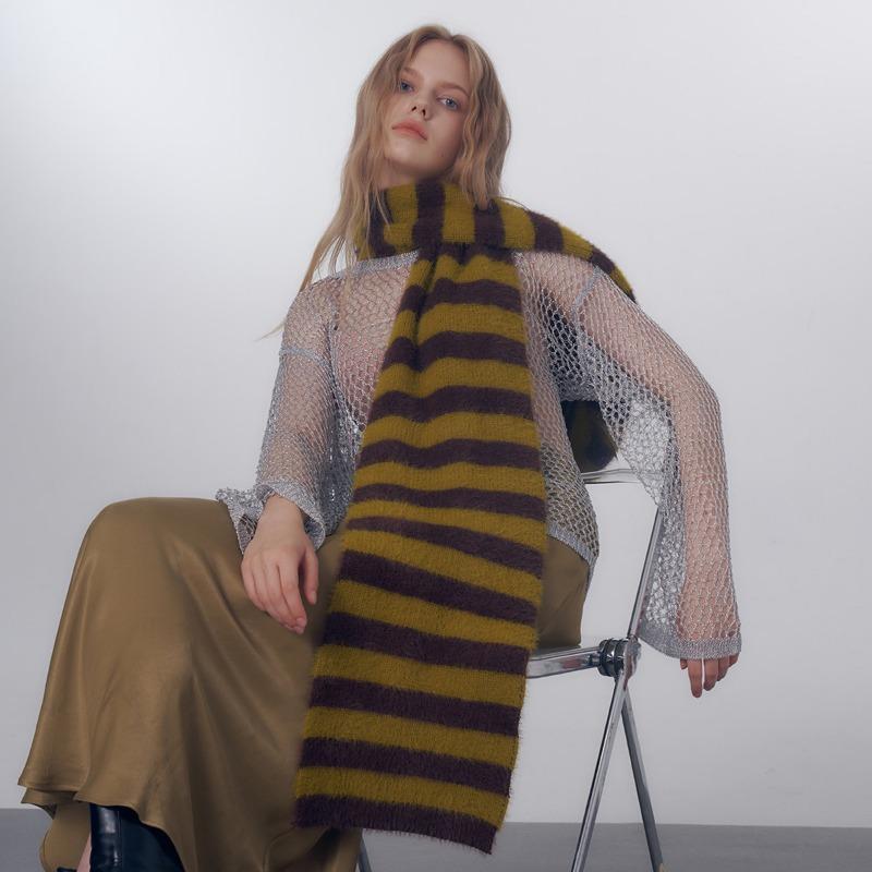 Original Niche Color Scheme Imitation Classic Striped Knitted Wool Muffler for Women Autumn Winter Soft Warm Scarf Female Shawl
