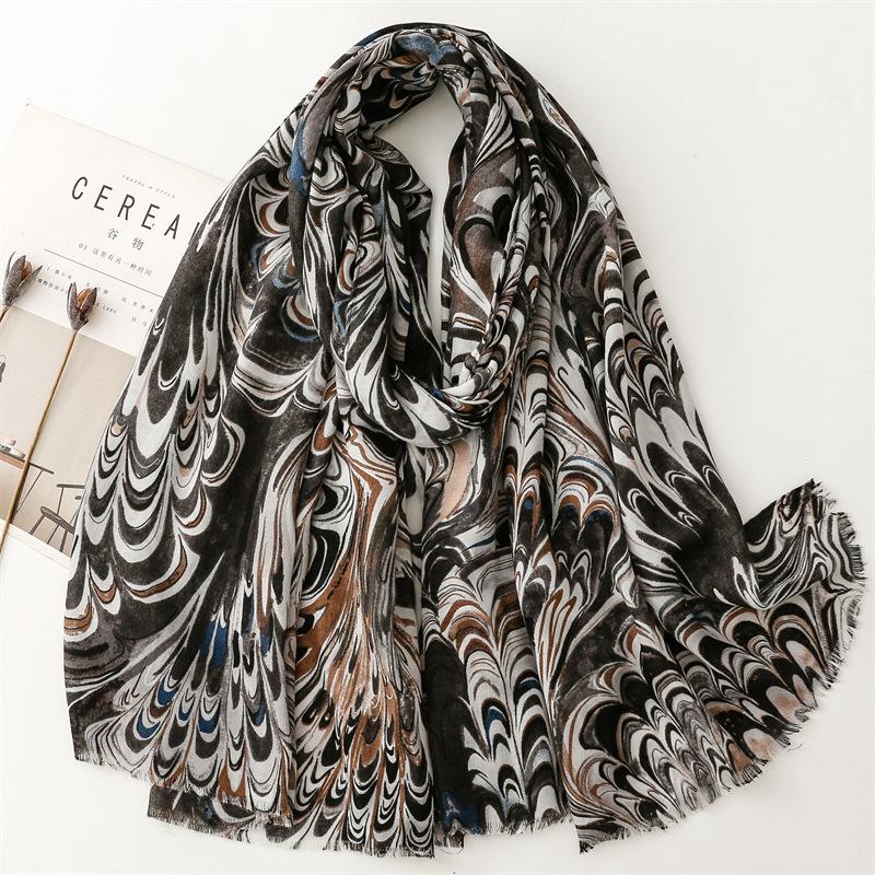 Aztec Ethnic Geometric Feather Tassel Viscose Shawl Scarf Lady Print Soft Pashmina Hijab and Wraps Foulard Muslim Sjaal 180*90Cm