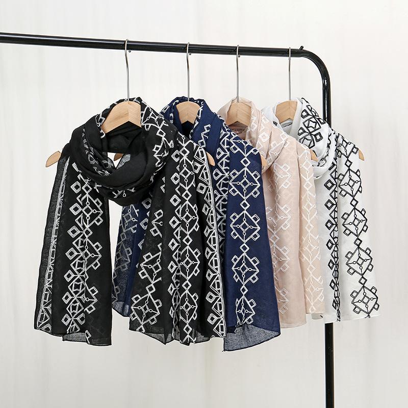 Plain Embroider Geometric Plaid Scarf Women Fashion Long Viscose Scarves Lady Stitch Shawls and Wraps Muslim Hijab Foulards