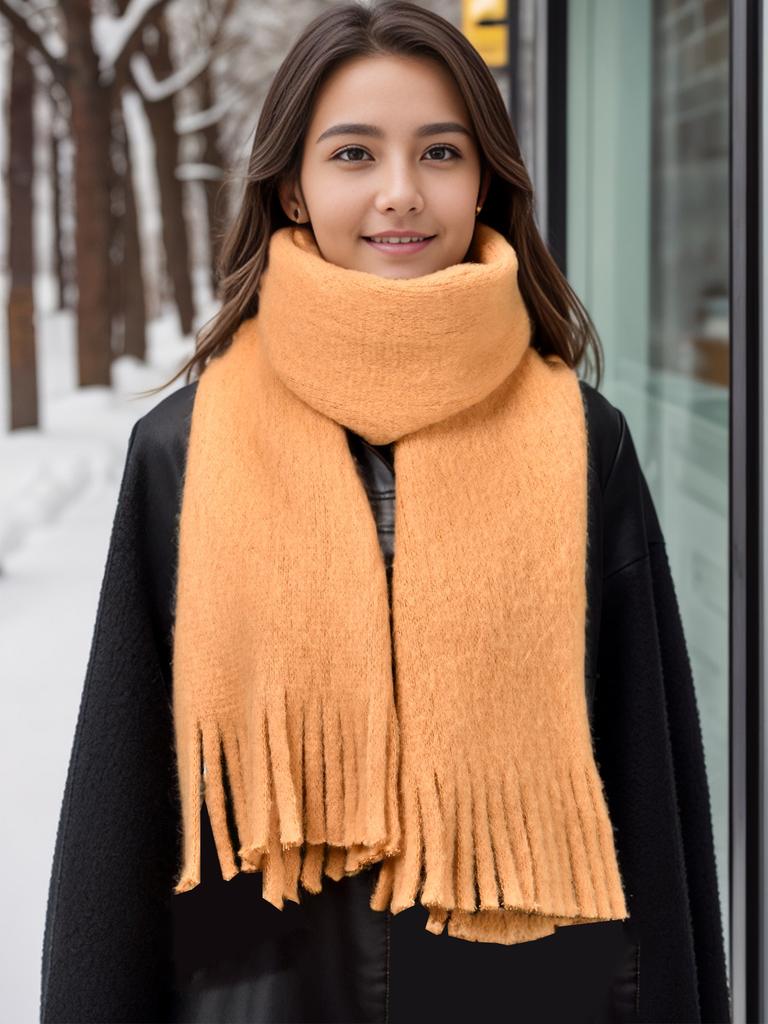 Women Winter Cashmere Scarf Solid Color Pashmina Blanket Wraps Female Thick Soft Bufanda Tassels Shawl Fashion Poncho Echarpe