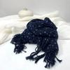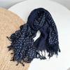 Vintage Dark Blue Floral Printed Cotton Linen Scarf Thin Breathable Versatile Neckerchife for Women