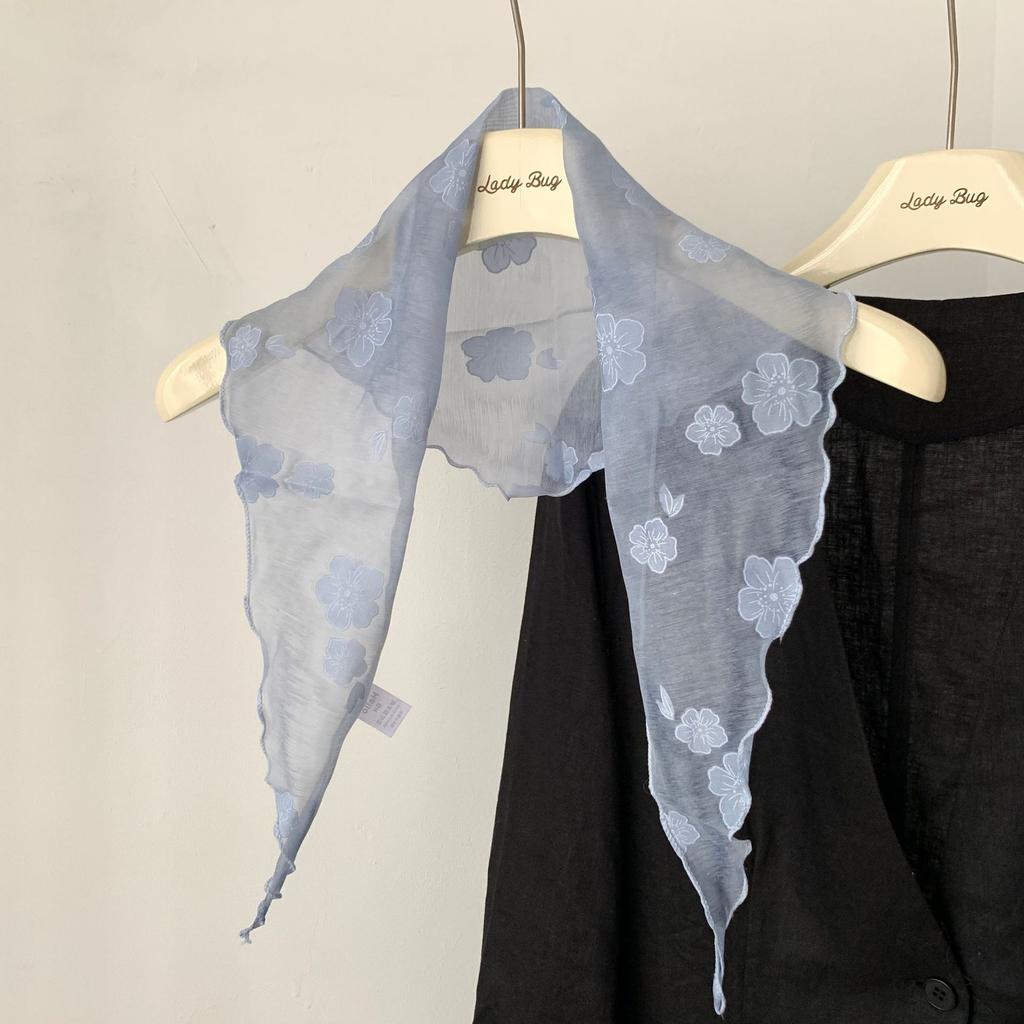 Korean Ins Girly Feeling Fresh Small Flower Printing Triangle Scarf Silk Headscarf Waist Seal Spring and Autumn Fashion Trend