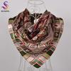 Spring Autumn Female Silk Square Scarf Shawl China Style Polyester Satin Hijabs Scarves Women Silk Scarves Coffee 90*90cm