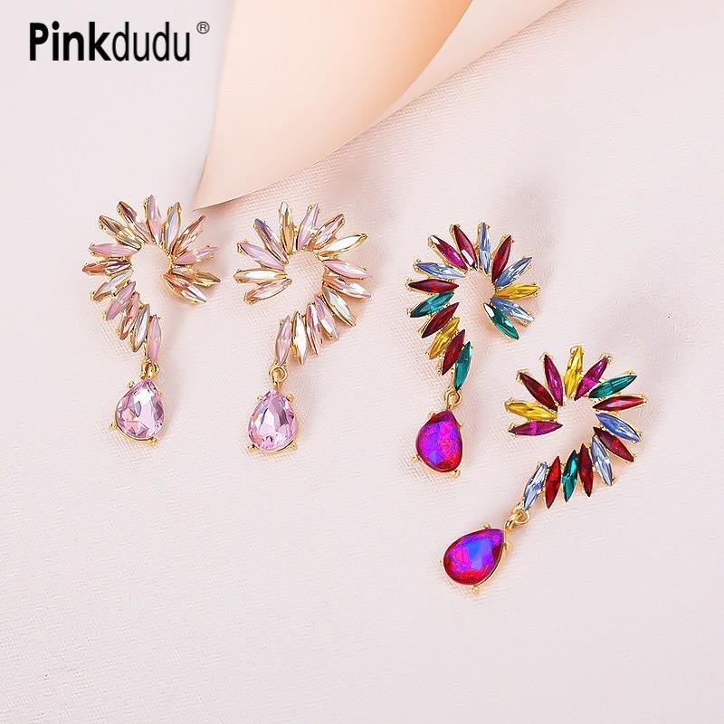 Pinkdudu Exaggerate Glass Geometric Block Zircon Earrings Gradual Color Trendy Drop Earrings Women PD2360