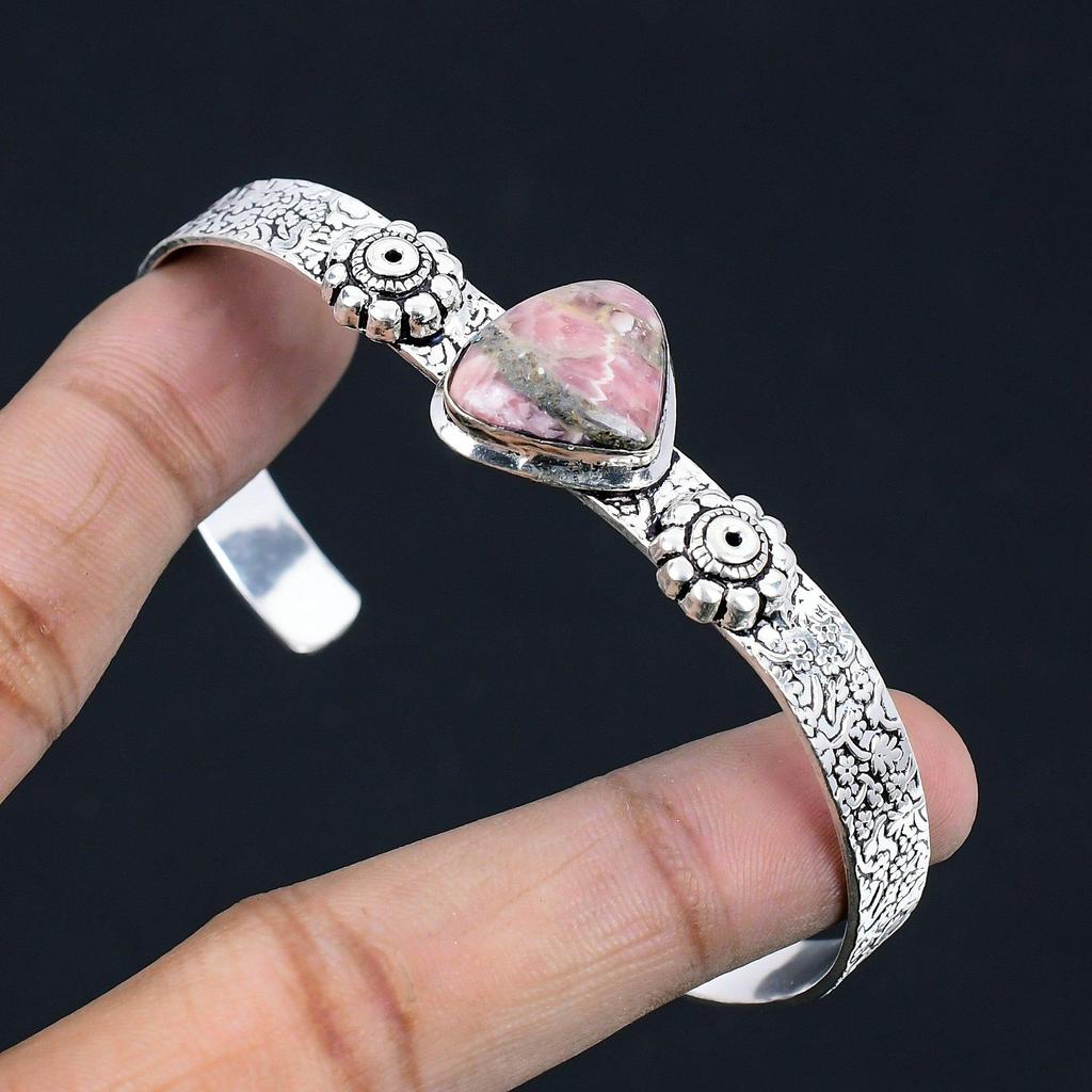 Heart Chakra Pear Rhodochrosite Stone Birthday Wife Bangle Jewelry 925 Silver