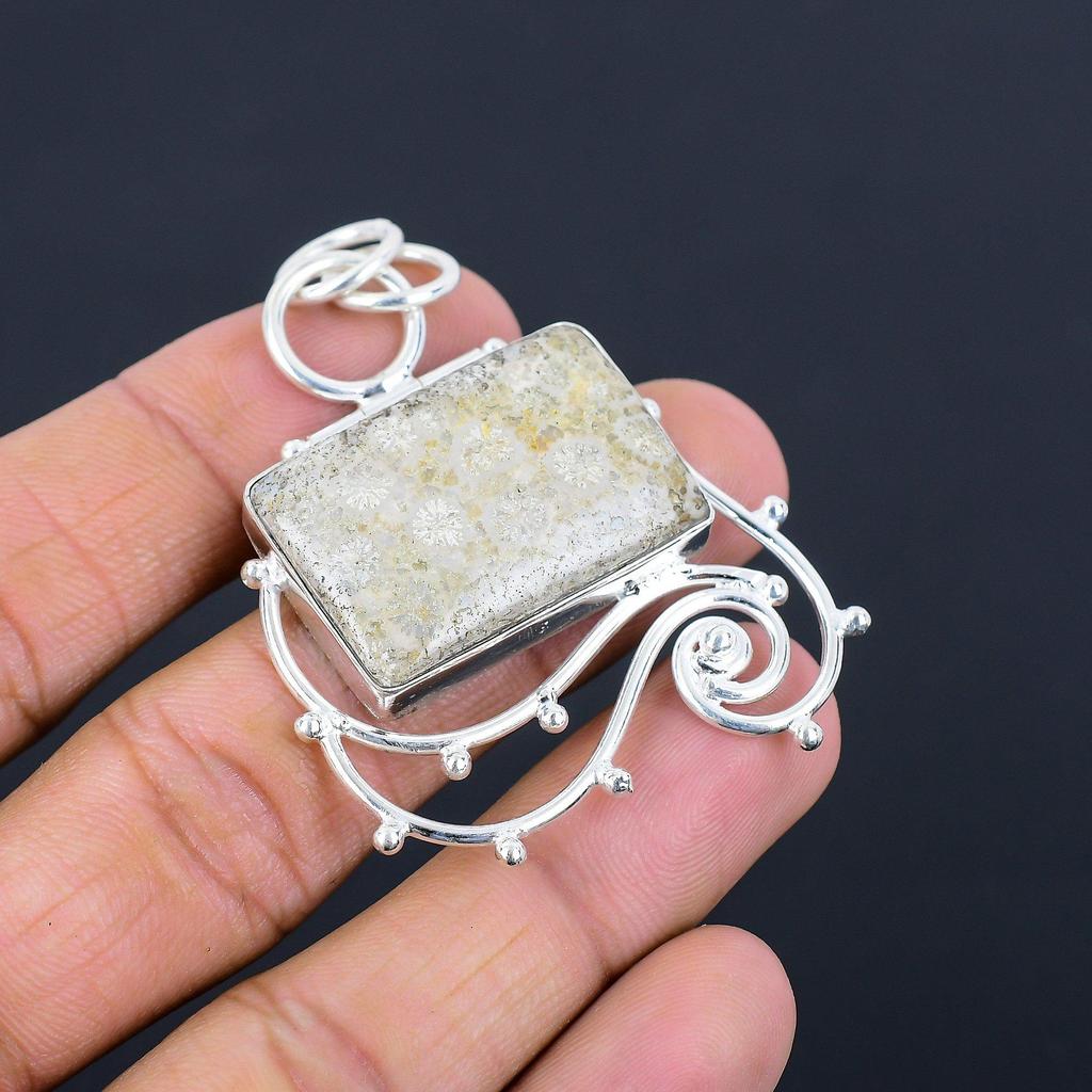 Natural Fossil Coral Gemstone Pendant 925 Sterling Silver Indian Jewelry