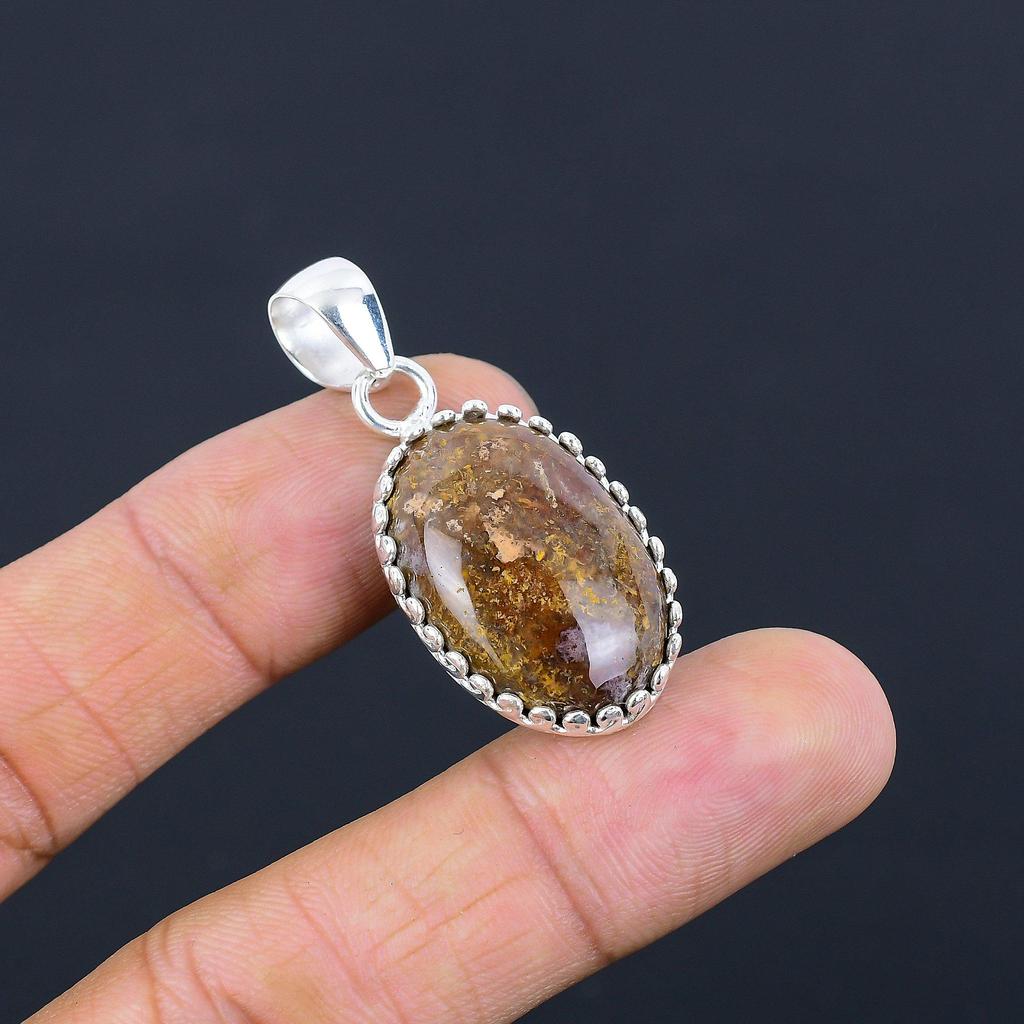 Oval Natural Plume Agate 925 Silver Wedding Bezel Daughter Boho Pendant Jewelry