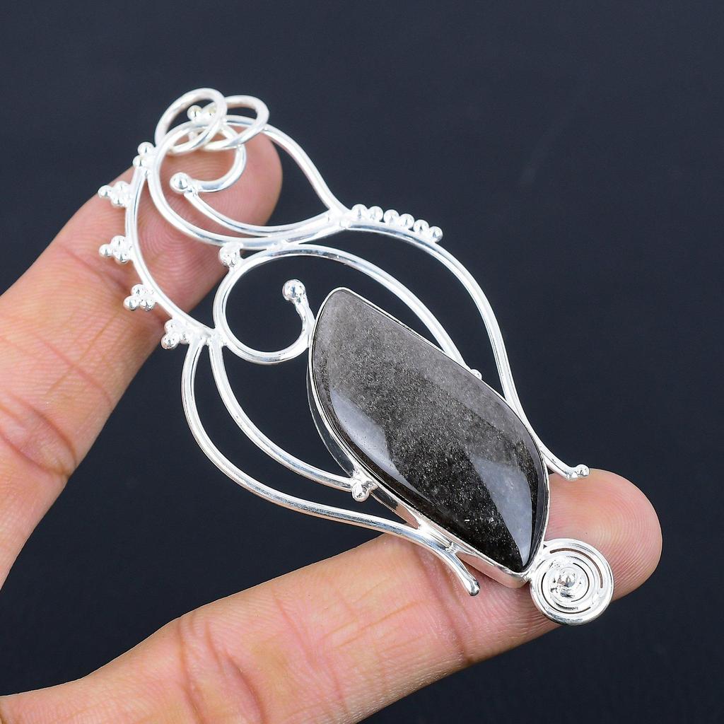 Gift For Women Pendant 925 Silver Natural Silver Sheen Obsidian Gemstone