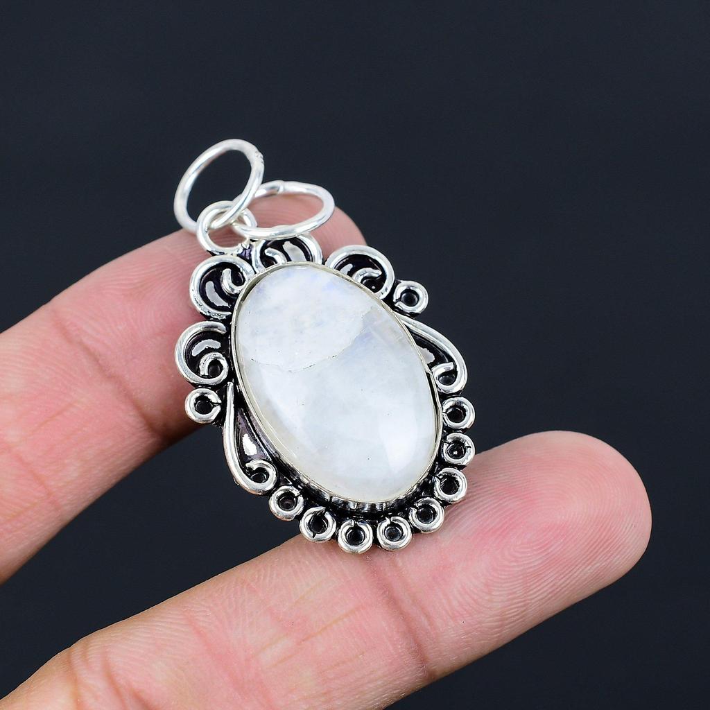 Daughters Day Sale Oval Rainbow Moonstone Stone Trendy Pendant Sterling Silver