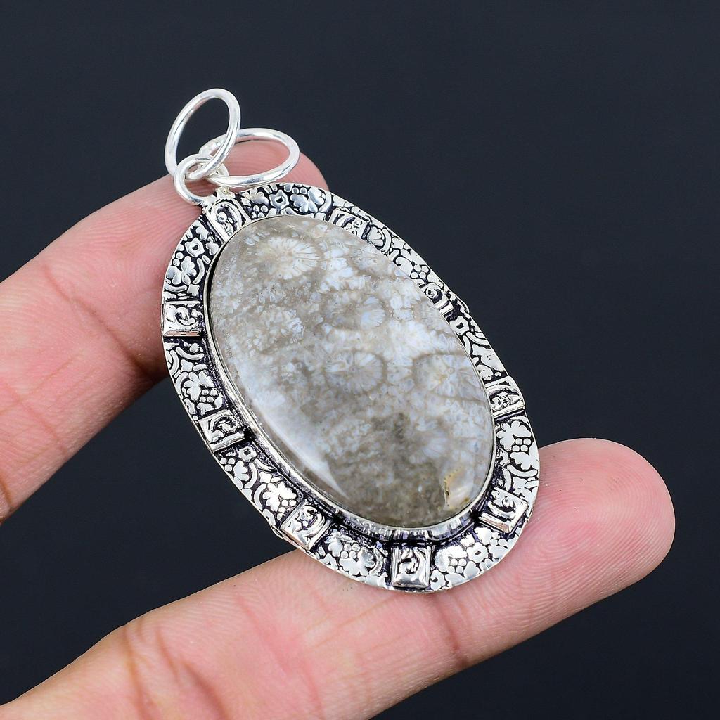 Sterling Silver Fossil Coral Stone Boho Wedding Anniversary Unique Bezel Pendant