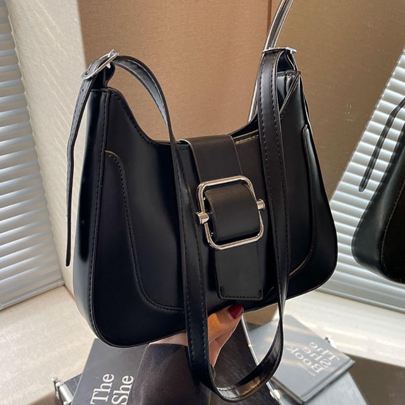 - **Structured Multi-Way Bag Details**: Features a stylish腋下包(armpit bag) silhouette with PU material, a sleek finish, prominent metal buckle accent, and an adjustable shoulder strap. It exudes edgy and trendy charm. Four versatile color options cater to diverse style preferences.