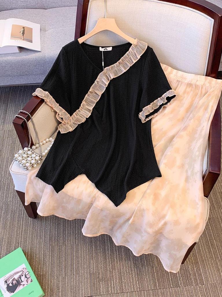 Experience unmatched comfort and style with this elegant plus-size T-shirt and skirt set from the Summer 2024 Collection. Crafted from high-quality polyester, this ensemble offers a light and breezy feel perfect for warm weather. The Chinese-inspired design adds a touch of cultural elegance, making it a unique addition to your summer wardrobe. Whether you're heading out for a casual day or a special occasion, this set promises a flattering fit and timeless appeal.